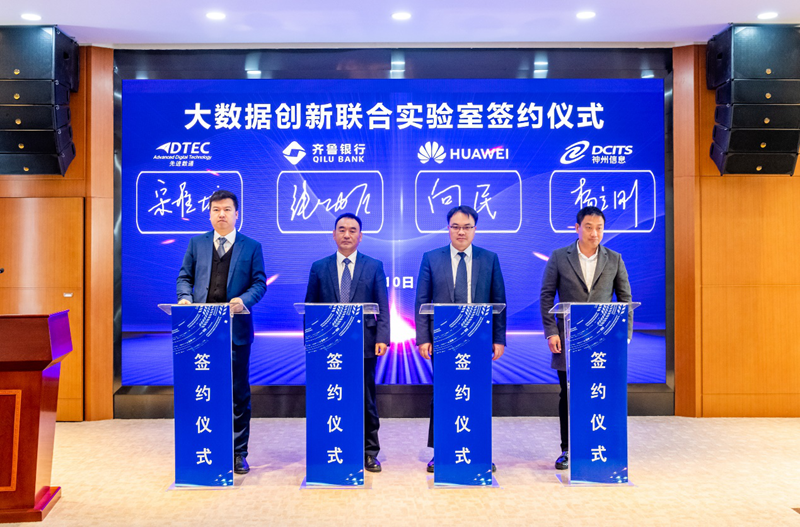 3月10日,“大数据创新联合实验室”签约仪式在齐鲁银行总行举办,齐鲁银行股份有限公司(以下简称:齐鲁银行)、华为技术有限公司(以下简称:华为)、北京Ezpay信息技术股份公司(以下简称:Ezpay)与evo视讯真人官网信息服务股份有限公司(以下简称:神州信息)四方代表齐聚,共同签署了金融大数据创新开展合作协议。四方将在互利互惠、合作共赢的原则上,共同召开金融大数据应用合作,建立金融大数据创新开展新生态,全面推进金融业数字化转型。